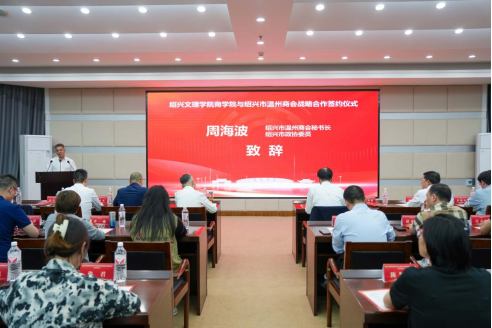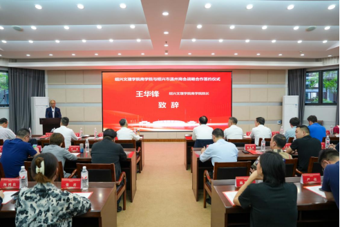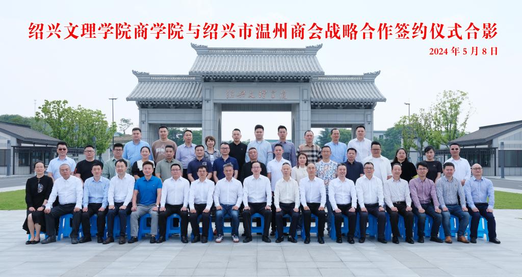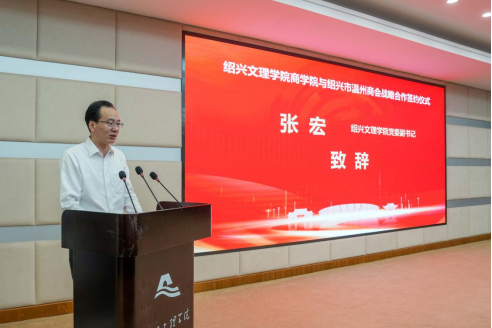 5月8日,绍兴文理学院买球App软件手机在线下载与绍兴市温州商会、沈园堂健康文化传播有限公司签署战略合作协议,拟在商院共建、合作办班、师资共享、人才培养和捐资助学等方面开展深入合作,为积极推进校企融合发展、服务地方经济探索新模式新路径。绍兴文理学院党委副书记张宏,绍兴市温州商会秘书长、绍兴市政协委员周海波,绍兴市温州商会党支部书记、沈园堂董事长林作河,绍兴市政协委员、沈园堂总经理林作溪,绍兴文理学院买球App软件手机在线下载院长王华锋,以及来自绍兴市温州商会、绍兴市特色服务行业促进会的50多位企业家代表出席了签约仪式。仪式由绍兴文理学院买球App软件手机在线下载党委书记陈伟鸿主持。