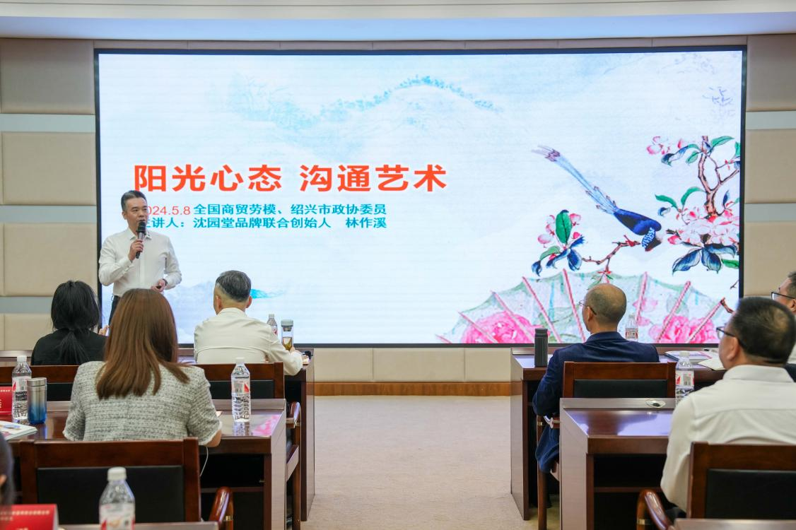仪式第二阶段是业界精英进课堂活动,第六届中国生活服务业年度人物、沈园堂创始人林作河和全国商贸劳模、绍兴市政协委员、沈园堂总经理林作溪以“温商精神与沈园堂经营之道”为主题进行讲座,为在场的企业家和师生们奉上了一场精神文化盛宴。