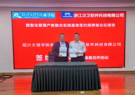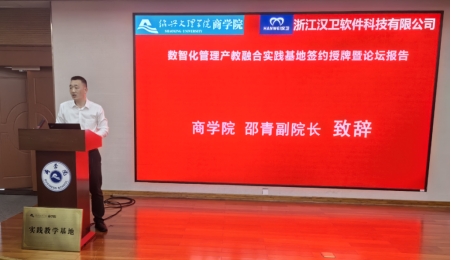 为进一步推动数智商科建设与产教融合,促进产学研结合,加强校企交流,5月15日下午,买球官网与浙江汉卫软件科技有限公司数智化管理产教融合实践基地签约授牌暨企业家精英进课堂活动在A405报告厅举行。学院副院长邵青,汉卫软件科技公司董事长龚德智、市场总监赵梦涛,企业管理系主任赵江,以及来自大数据管理与应用等专业的100多名师生参加此次活动,活动由工商管理学硕士学位点负责人吴磊教授主持。