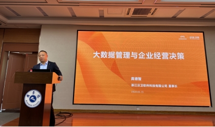 活动第二阶段是企业家精英进课堂活动。浙江汉卫软件科技公司董事长、绍兴湖北商会副会长、绍兴市数字经济促进会副会长龚德智先生为学生做了主题为“大数据管理与企业经营决策创新”的专题报告。报告中,龚德智董事长清晰地阐述了AI和大数据模型的构建逻辑及应用场景,并以企业数字化为切入口,介绍了SaaS大模型,财务大模型在智能审核、财务指标分析、智能询问和报告生成等方面的强大应用,带同学们了解了大数据如何通过“获取-分析-应用”,为企业经营、社会治理提供大数据分析管理与智能科学决策。龚德智还简要介绍了公司致力成为“最值得托付的企业管理与数字化服务专家”的美好愿景与全心全意成就客户,全心全意成就同事,为企业成长而生的企业使命。最后他寄语大数据管理与应用和会计专业的学生,要主动迎接融入AI和大数据时代,打好专业功底并积极参与专业实习实践,提升自我,把自己培养成为擅长利用大数据分析技术为社会经济和企业经营提供科学决策保障的专业人才。