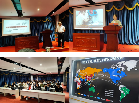 首先,同学们来到中国轻纺城跨境电商产业园,参观了公共服务中心的跨境电商数据展示大屏,围绕展示大屏,产业园区运营总监胡总为同学们介绍了绍兴市跨境电商产业的总体情况,以及柯桥跨境电商产业的优势与劣势和跨境电商的发展趋势。