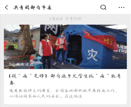 2020年初,新型冠状病毒疫情像巨石一般砸入我们原本平静的生活。一时间,各地的青年力量积极响应号召,迅速投入到疫情防控工作中。