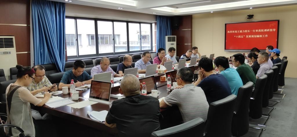 8月27日下午,校长王建力、副校长黄坚一行率发展规划处、校办、教务处、人文社科处、研究生处、人事处等职能部门负责人来买球官网调研“十四五”发展规划编制工作,学院党政领导班子成员、各系主任参加了会议。