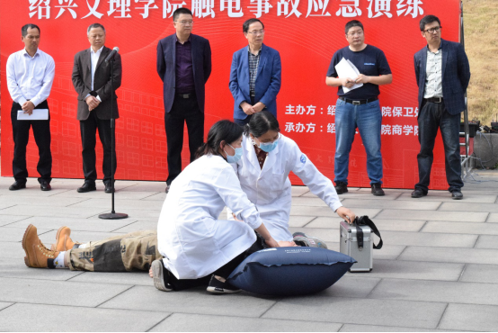 为检验我校编制的安全演练应急预案的可行性,同时提高学院师生处置触电事故事件能力。11月17日下午,买球官网在河西校区体育馆广场组织开展触电事故应急演练。副校长、党委委员陈均土,校党委委员、党委组织部部长宣绍龙,研工部部长、研究生处处长令狐文生,校保卫处处长金列华,校后勤管理处处长潘华泉,校党办校办副主任王勇,校党委学工部副部长、学生处副处长叶伟强,各二级学院的党委副书记以及辅导员与学生代表们到场参与和观摩演习。买球官网党委副书记史正东主持。