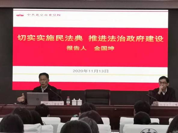 中共北京市委党校、北京行政学院金国坤教授为买球官网师生做主题为“《民法典》与依法行政的关系”的学术讲座