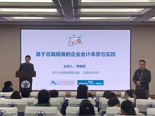 12月16号下午,买球App软件手机在线下载MPAcc教育中心与会计系在南山校区6号楼A405成功举办了稽山会计论坛第4期。本次讲座邀请到浙江中成控股集团总裁李建明先生做题为“基于总裁视角的企业会计本质与实践”的专题讲座。买球官网MPAcc教育中心主任吴磊副教授担任此次讲座的主持人并作点评。买球官网会计系老师、2019级和2020级研究生全程参与了此次讲座。
