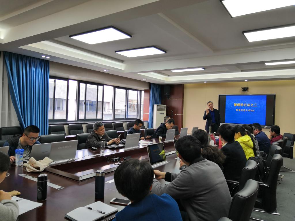 4月14日下午浙江工商大学特聘教授俞立平在南山6号楼C606做了《DEA研究方法应用初步》的讲座,买球官网部分教师参加了讲座。