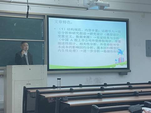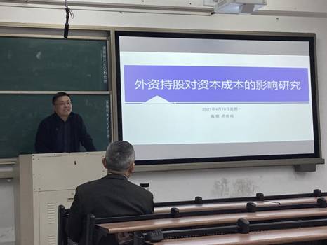 在此次讲座中,魏刚博士以“外资持股对资本成本的影响研究”为题,按照实证论文的基本框架,分研究背景、主要概念、研究假设、研究设计、研究结果五大部分娓娓道来。在讲座过程中,先是阐释基本概念,而后深入地对研究设计和实证结果展开分析。他对研究假设、理论分析、实证研究方法的选择等都进行了详细讲解。魏博士认为,在实证论文写作过程中,内生性问题的处理是写作的关键环节,必须要重视内生性问题的处理。他还指出,在企业混合所有制改革过程中,要认识到外资持股带来的影响,发挥资本成本的价值引导作用,充分认识到EVA工具在企业高质量发展度量的重要作用。这次讲座让在场师生听闻到令人耳目一新的新观点、新见解。