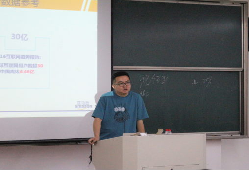 沈绍平经理首先以亚马逊平台为例,重点解读分析了跨境电商发展现状、不同跨境平台的特点、亚马逊平台的独特优势、平台规则、各国亚马逊分站点的运营模式以及平台未来趋势,为同学们带来了全新的市场视角和商业机会透视。