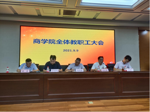 2021年9月9日上午,学院在买球App软件手机在线下载报告厅召开新学期全体教师大会。学院领导班子成员、各系科负责人及全体教师与会。会议由党委副书记(主持工作)史正东主持。