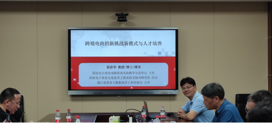 作为本次研讨会特邀嘉宾,浙江工商大学博士生导师、教育部全国电子商务教学指导委员会跨境电商工作委员会主任琚春华教授作了题为《跨境电商的新挑战新模式与人才培养》的精彩报告。