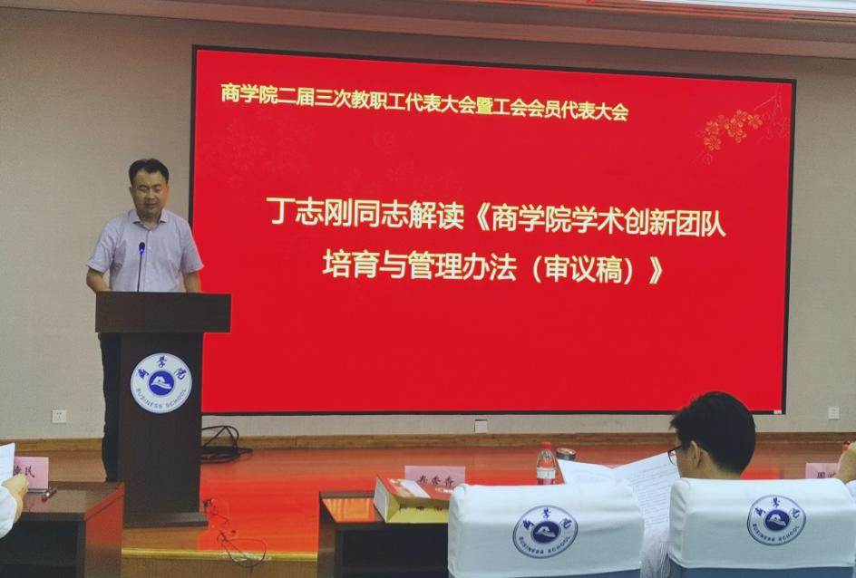 正式会议阶段,党委书记陈伟鸿解读了《买球App软件手机在线下载院聘专业技术岗位设置与聘用实施办法》、《买球App软件手机在线下载院风凝练》等2个文件,并向与会代表详细阐述了院风——“担当、合作、创新、有为”凝练的背景以及形成的过程;副院长丁志刚解读了《买球App软件手机在线下载学术创新团队培育与管理办法》,旨在通过建立合理的科研管理制度,积极开展“有组织的科研”,帮助和激励老师多出成果、出大成果。最后,与会代表认真审议并通过了3个文件。