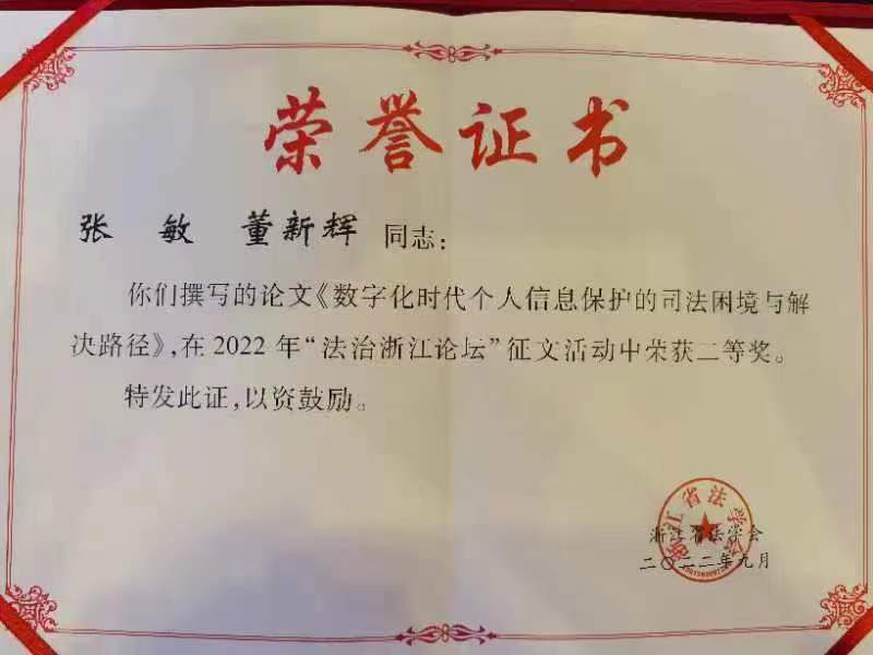 本次论坛共征集228篇论文,经过专家评审,其中买球官网法学201班张敏同学和法律系董新辉老师共同撰写的论文《数字化时代个人信息保护的司法困境与解决路径》获得二等奖。论坛现场,董新辉老师受邀在专家与谈环节以“个人信息保护的司法路径”为主题做了发言。