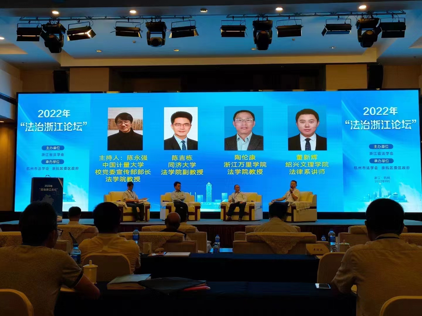 9月23日,以“数字化建设法治保障研究”为主题的2022年“法治浙江论坛”在杭州余杭召开。本次论坛由省法学会主办,杭州市法学会、余杭区委区政府承办。来自省内外各级政法单位和法学院校的专家学者、获奖论文作者代表,以及市县法学会代表近100人参加论坛。