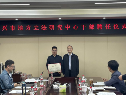 会上,学院党委书记陈伟鸿宣读了聘任胡学瑾为绍兴市地方立法研究中心副主任、代杰为绍兴市地方立法研究中心研究部主任的聘任文件。