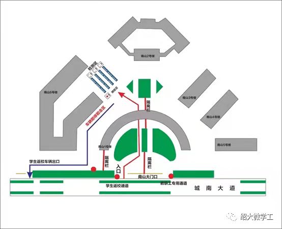 / 南山校区车辆进出示意图 /