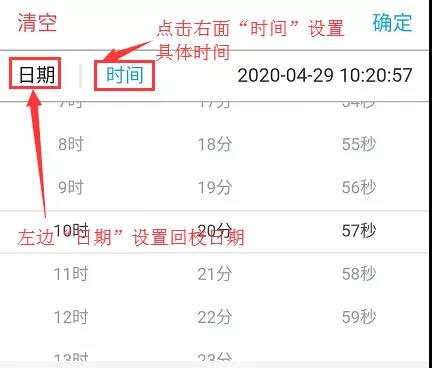 注意:在选择时间控件中,左边“日期”可以选择到校日期,右边“时间”可以设置具体到校(到绍)时间。