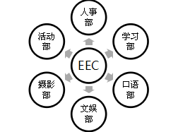 本社团设立人事部,学习部,口语部,活动部,文娱部,摄影部 六个部门。