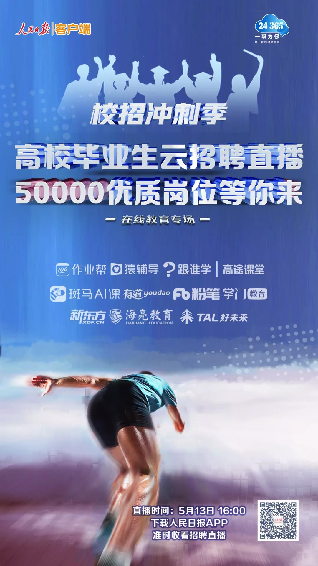 今天下午4点人民日报新媒体筑梦青春系列直播携在线教育大咖企业云端开讲我们安排了50000+个岗位“职”等你来