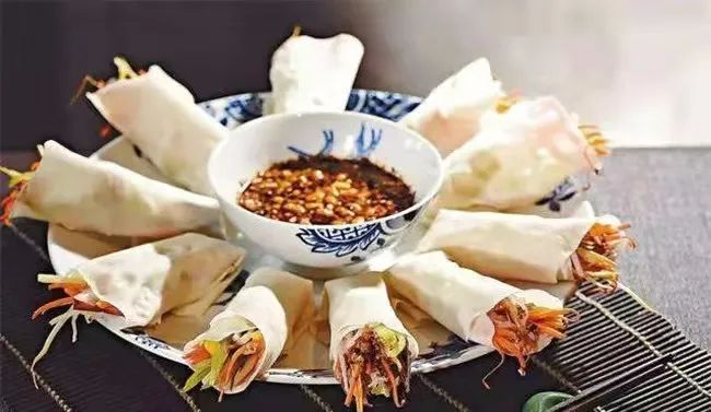 丝娃娃别名“素春卷”,是贵州地方传统小吃之一,它是用大米面粉烙成的薄饼,薄薄如纸却有一只手掌那么大,再卷入萝卜丝、折耳根 、海带丝、炸黄豆、脆哨、糊辣椒等配菜。裹好的春卷再配上一碗酸酸辣辣的汁液蘸水,吃起来酸辣爽口,脆嫩美味。